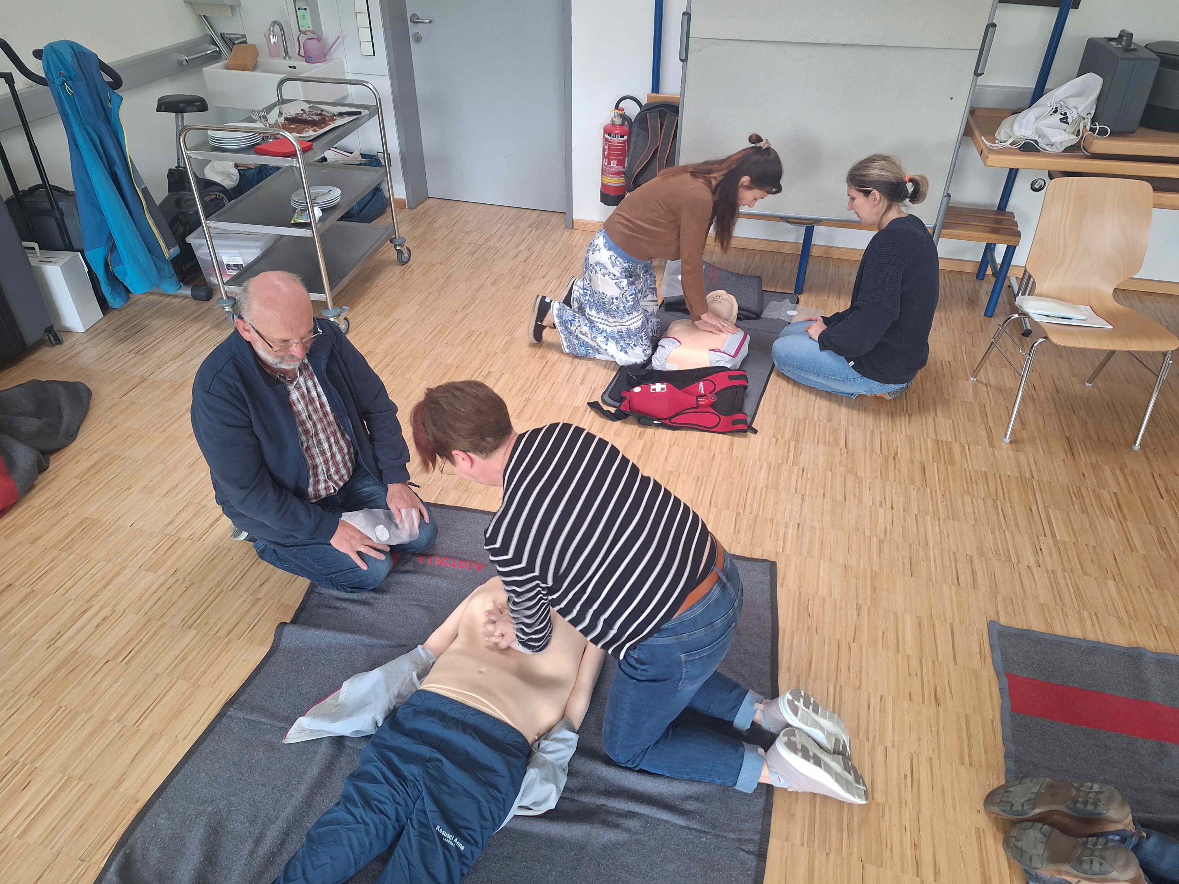Durch vor allem praktische Übungen wurden grundlegende Kenntnisse und Fertigkeiten im Sinne der aktuellen Lehrmeinung kommuniziert und praktiziert. Ebenso wurde das Thema der internen Rettungskette evaluiert.